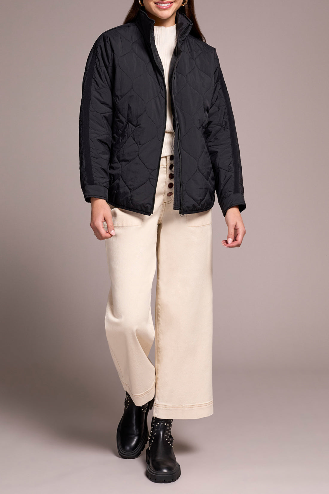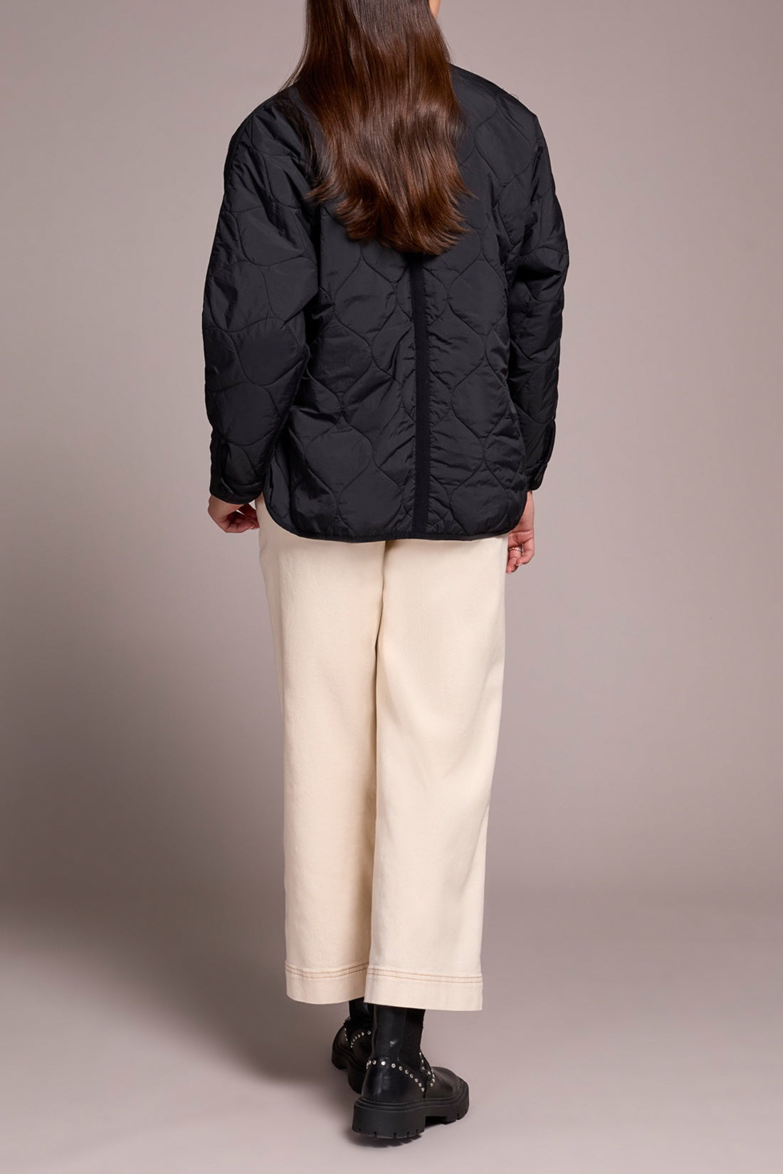Reach for this quilted puffer jacket for a refined layer of lightweight warmth and sophisticated coverage. Enamel snaps lend a polished touch to its casual design, while the rounded hem creates a flattering modern silhouette. Twill tape detailing along the sleeves adds structure, elevating the jacket with a thoughtfully crafted finish.