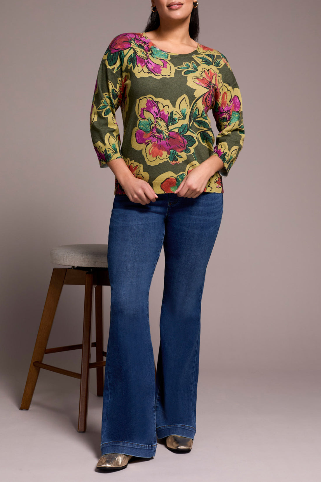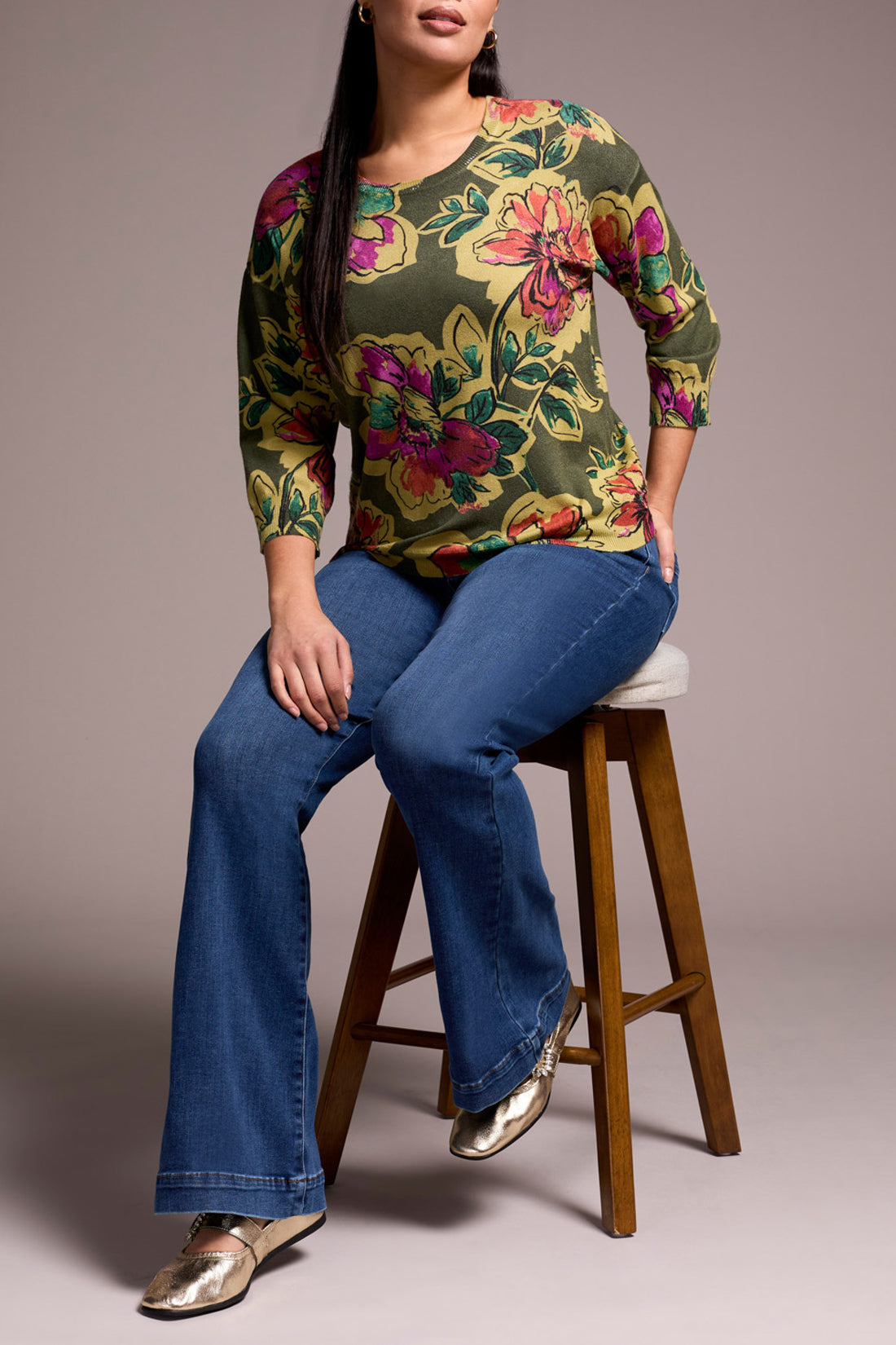 Opt for this relaxed crewneck sweater when you desire casual coziness in a soft yarn blend. The all-over floral print adds an uplifting touch to your look, while drop shoulders enhance comfort and ease of movement. Three-quarter-length sleeves provide the perfect amount of coverage.