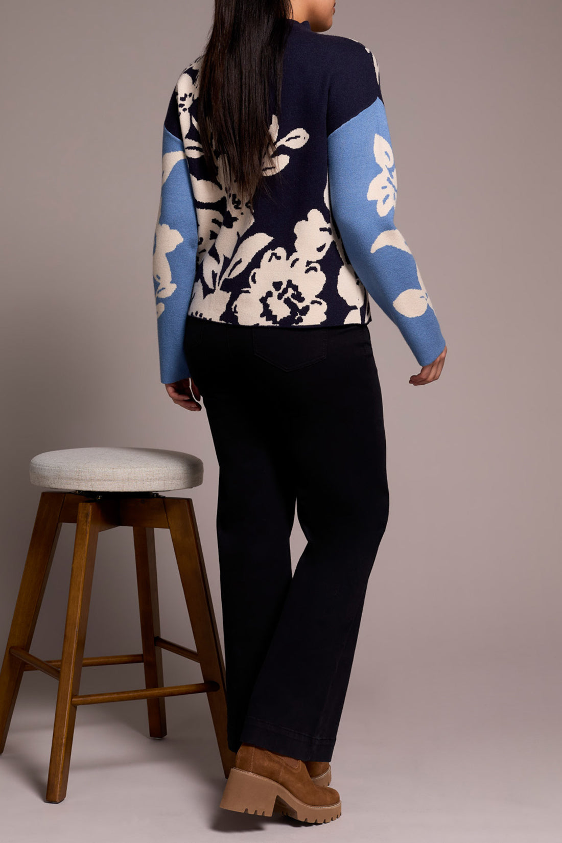Cozy style that makes a fresh statement. Crafted with a floral intarsia design and a funnel neckline that's both polished and practical, this long-sleeve sweater is our must-have item of the season.